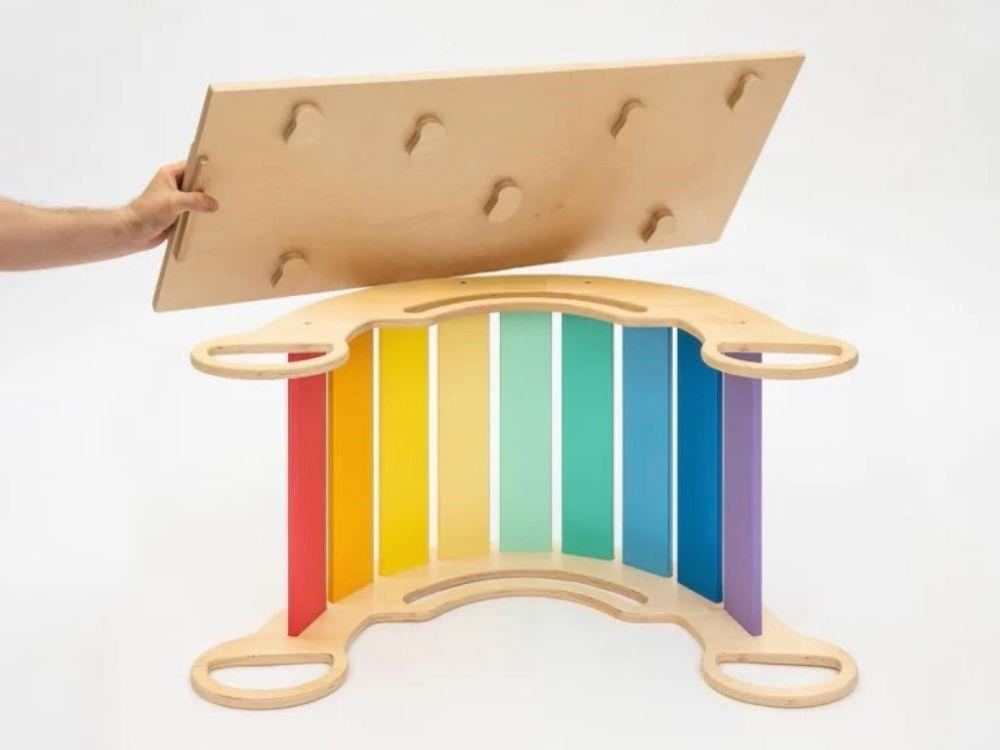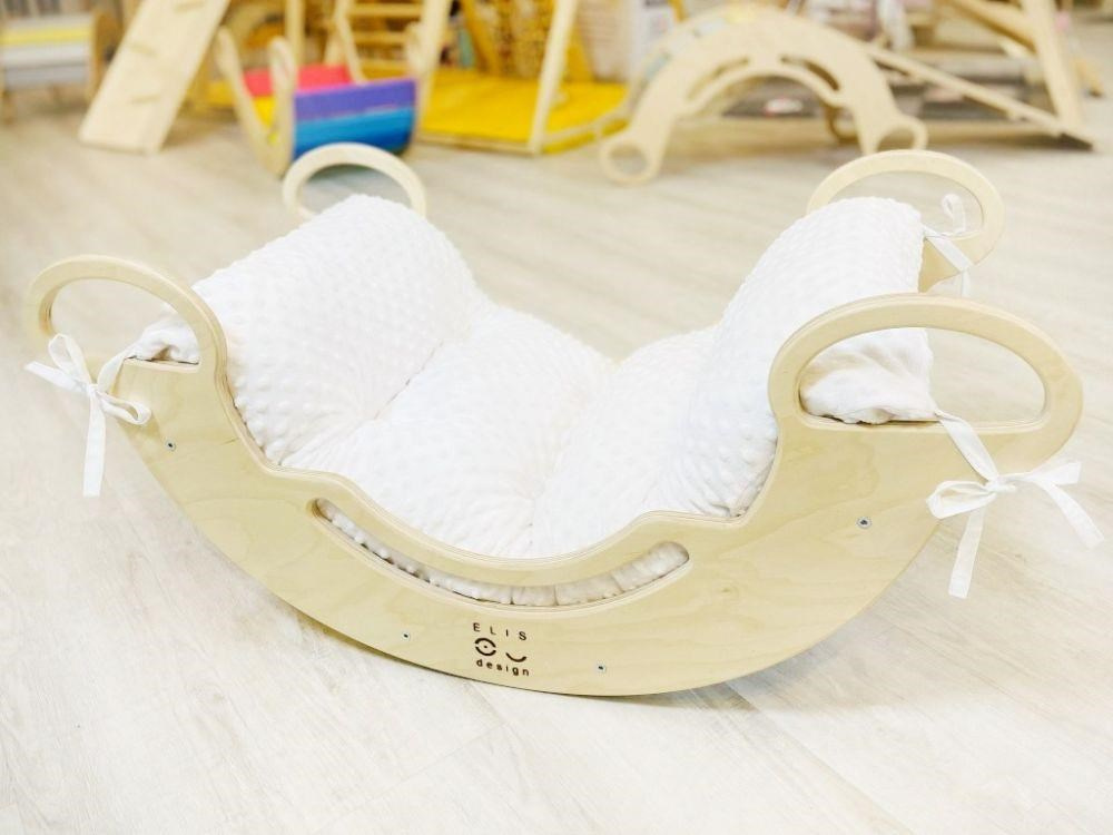 Dřevěná dětská Montessori houpačka smile 6in1 vás překvapí svým designem i multifunkčností. Houpačka bude každý den svým širokým úsměvem lákat děti k příjemnému pohoupání i k zábavné hře. Její využití je všestranné, může být houpačkou, skluzavkou, prolézačkou, skrýší i sedačkou, při doplnění oboustranným prknem i dětským nábytkem. Oboustranné prkno není součástí houpačky. Díky svěžím fresh barvám rozzáří každý dětský interiér. Vyrobená je z těch nejkvalitnějších materiálů, ručně dohladka opracovaná a lakovaná barvami s atestem. Montessori houpačka smile je širší než naše Montessori houpačky 5in1, proto k této houpačce nabízíme i speciální oboustranné prkno, které je doplňkem k houpačkám smile. Díky prknu snadno proměníte houpačku smile v dětský stoleček. Oboustranné prkno není součástí houpačky, pro využití houpačky jako nábytku je nutné prkno samostatně dokoupit..