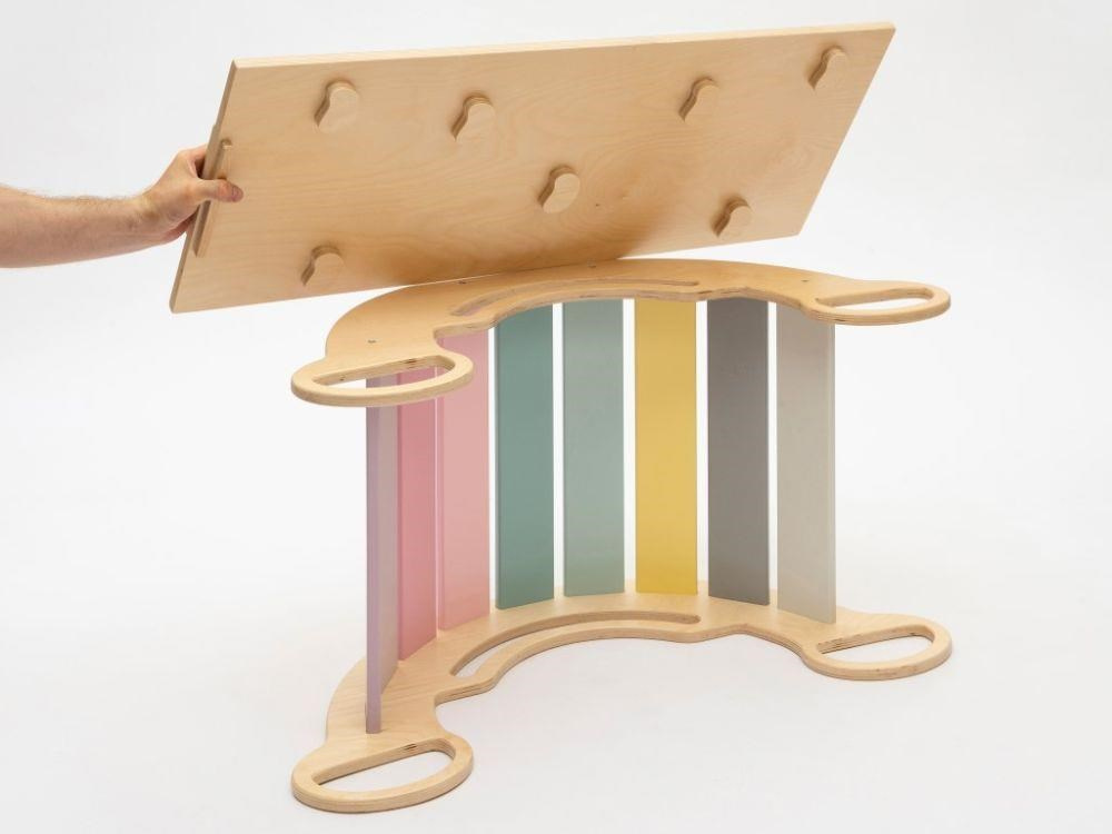 Montessori dětská houpačka smile 6in1 jistě vykouzlí úsměv na tváři vaší holčičky nebo chlapce. Svým designem, pastelovými barvami a širokým úsměvem bude denně lákat děti k zábavné hře i příjemnému pohoupání. Její využití je všestranné, může být houpačkou, skluzavkou, prolézačkou, skrýší i sedačkou, při doplnění oboustranným prknem i dětským nábytkem. Oboustranné prkno není součástí houpačky. Díky jemným pastelovým barvám je vhodná do každého interiér. Vyrobená je z těch nejkvalitnějších materiálů, ručně dohladka opracovaná a lakovaná barvami s atestem. Montessori houpačka smile je širší než naše Montessori houpačky 5in1, proto k této houpačce nabízíme i speciální oboustranné prkno, které je doplňkem k houpačkám smile. Díky prknu snadno proměníte houpačku smile v dětský stoleček. Oboustranné prkno není součástí houpačky, pro využití houpačky jako nábytku je nutné prkno samostatně dokoupit..