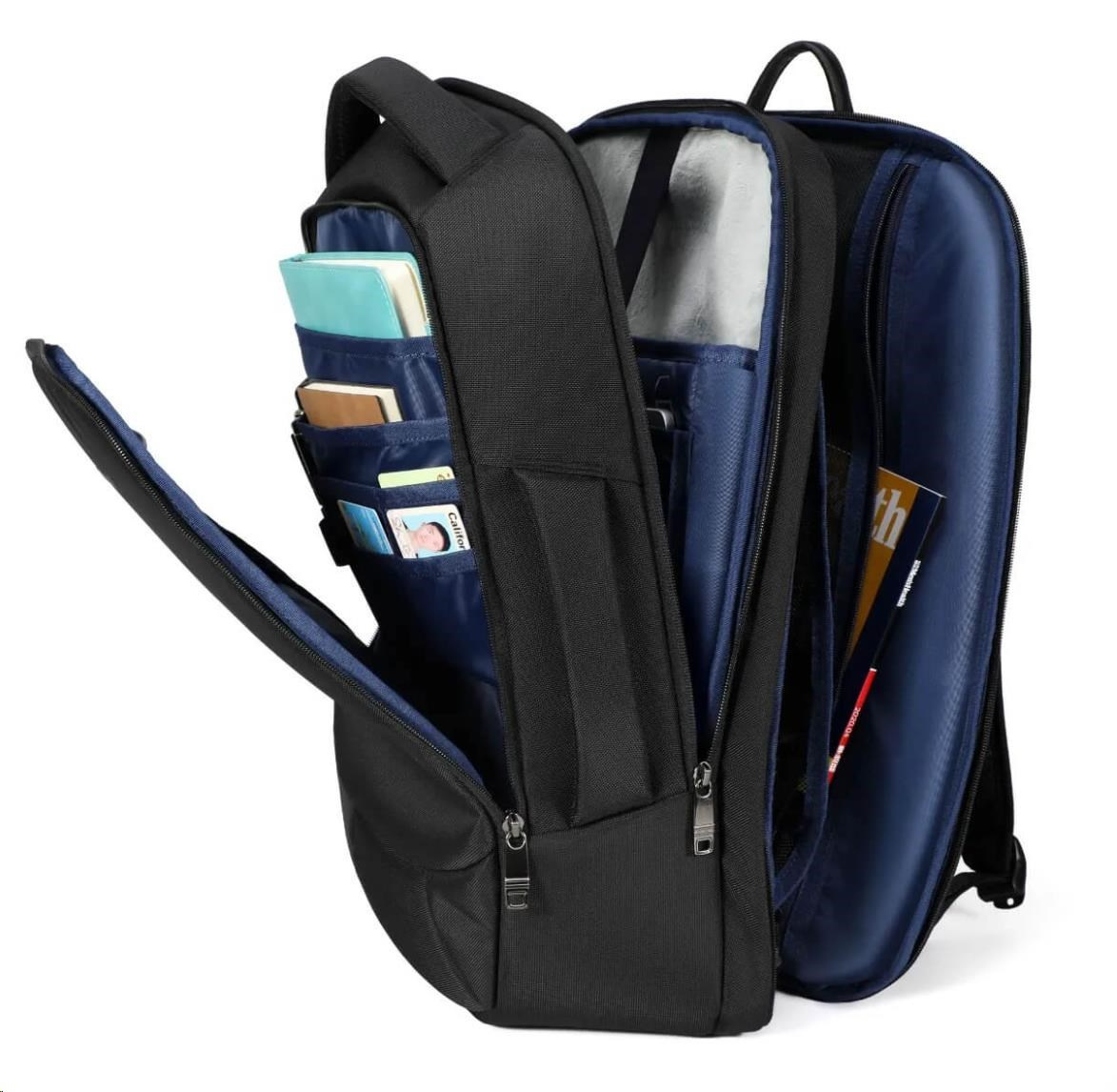 Batoh má dostatek vnitřních přihrádek pro uložení drobných předmětů.