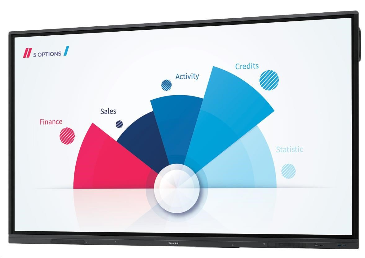| Příslušenství | Mobilní stojany (PD02MHA-CB86; PD03MHA-CB86); Rozšíření licence softwaru pera PN-SU01; Soundbar (PN-ZCMS1); Upevnění na stěnu (SF680P); USB-C kabel (USB-C 5M) |