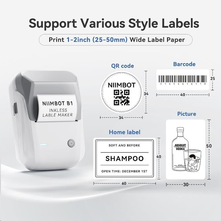 NIIMBOT B1 je tiskárna etiket, která kombinuje výkon, pohodlí a kvalitu. S její jednoduchou obsluhou a vynikajícími funkcemi vás překvapí, jak rychle a snadno můžete vytvářet profesionální etikety.