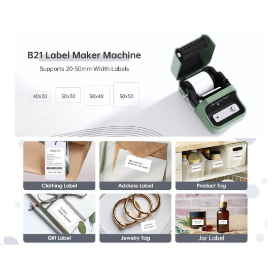 Niimbot Tiskárna štítků B21S Smart, zelená + role štítků 210ks