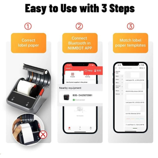 NIIMBOT B3S je tiskárna etiket, která kombinuje výkon, pohodlí a kvalitu. S její jednoduchou obsluhou a vynikajícími funkcemi vás překvapí, jak rychle a snadno můžete vytvářet profesionální etikety.