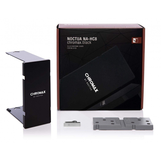 Chladičový kryt NA-HC8 chromax.black je přídavné příslušenství pro oceňované CPU chladiče NH-U12A od Noctua. Vyrobeno z vysoce kvalitního hliníku s černým práškovým nástřikem, umožňuje uživatelům dát chladiči elegantní, nenápadný vzhled, který se skvěle hodí do celočerných sestav a dobře ladí s mnoha dalšími oblíbenými barevnými schématy. Díky snadné a přímočaré instalaci trvá změna vzhledu chladiče NH-U12A jen pár minut a nevyžaduje ani jeho odpojení od CPU. V kombinaci s ventilátorem chromax.black.swap edice NF-A12x25 vám NA-HC8 chromax.black dává možnost proměnit váš NH-U12A v celočerný výkonný stroj, který vypadá stejně skvěle, jako chladí.