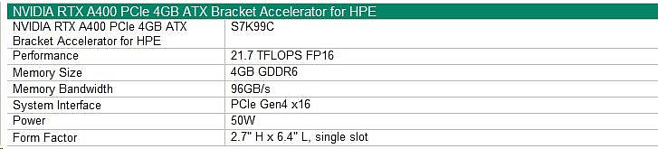 NVIDIA RTX A400 4GB PCIe ATX Bracket Accelerator for HPE.