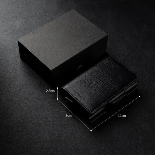 MYBALO Oslo je elegantní minimalistická peněženka z vysoce odolné PU kůže, která zaujme sofistikovaným vzhledem doplněným o precizní sedlové ruční prošívání. Díky praktickému mechanismu stačí lehce posunout páčku a až deset karet se elegantně vysune do přehledného vrstveného uspořádání, ve kterém snadno najdete tu pravou. Integrované hliníkové pouzdro navíc spolehlivě chrání vaše karty před nechtěným skenováním díky technologii RFID/NFC blokace. Peněženka je určena celkem až na 14 karet: 10 v hliníkovém pouzdře a další 4 v přídavných přihrádkách. Nechybí ani prostor na bankovky či drobnou hotovost. Dodává se v elegantním dárkovém balení, takže je skvělou volbou nejen pro vás, ale i jako stylový dárek pro někoho blízkého.