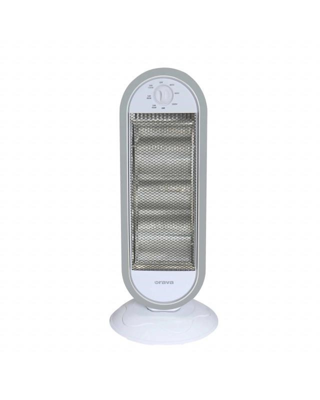 "Halogenový ohřívač se 3 topnými tělesy. Vysoká účinnost ohřevu bez víření vzduchu. 3 úrovně nastavení topného výkonu: 400 W, 800 W a 1 200 W Funkce oscilace. Praktická rukojeť pro přenos ohřívače. Bezpečnostní pojistka vypnutí při převrácení ohřívače. Napájení: 220 - 240V~ 50 - 60Hz, 1 200 W ".