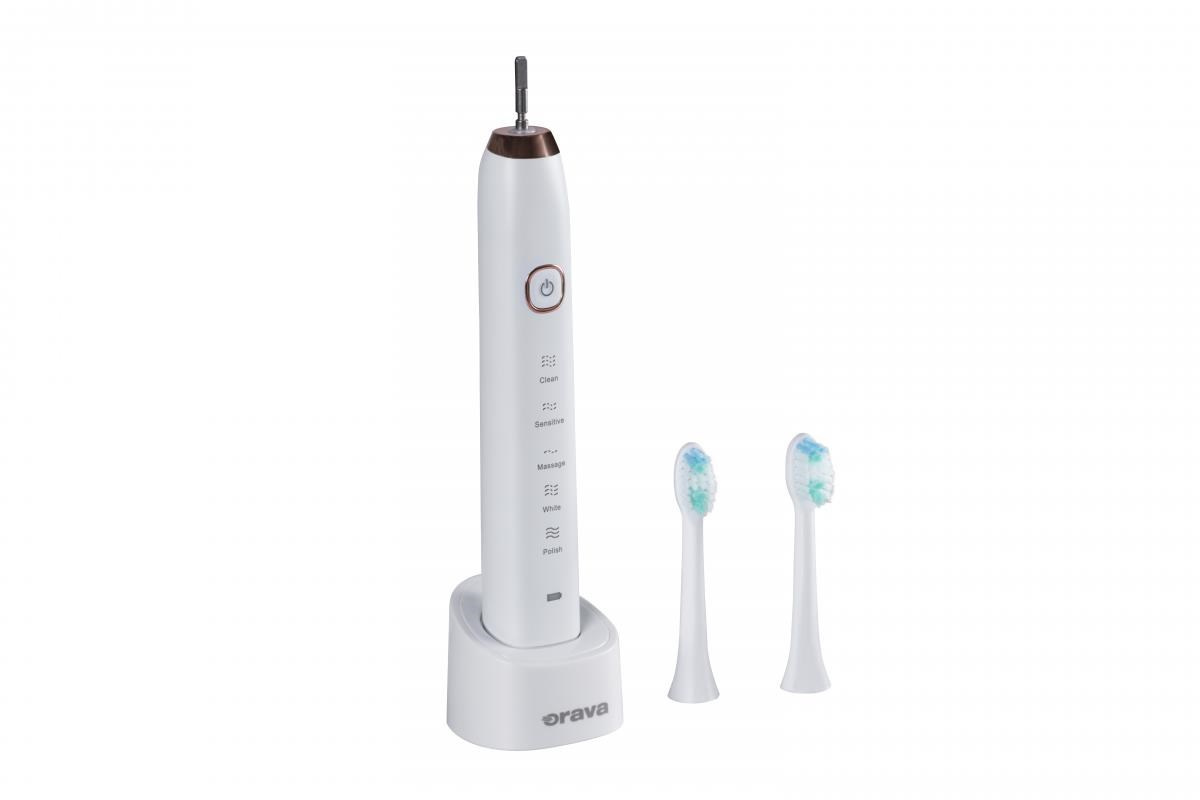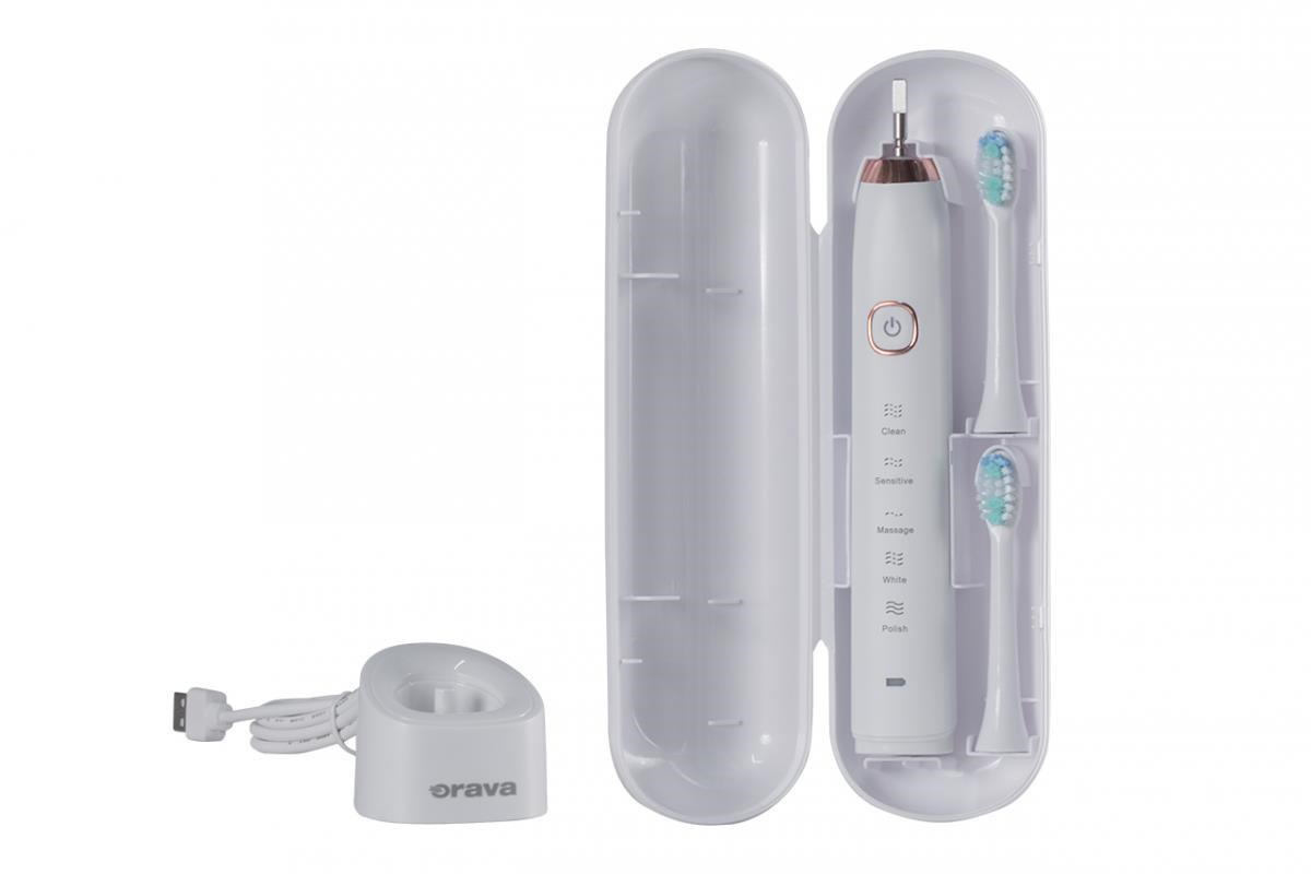 Orava Stomafresh sonický zubní kartáček, 5 režimů, cestovní pouzdro, časovač, bílá