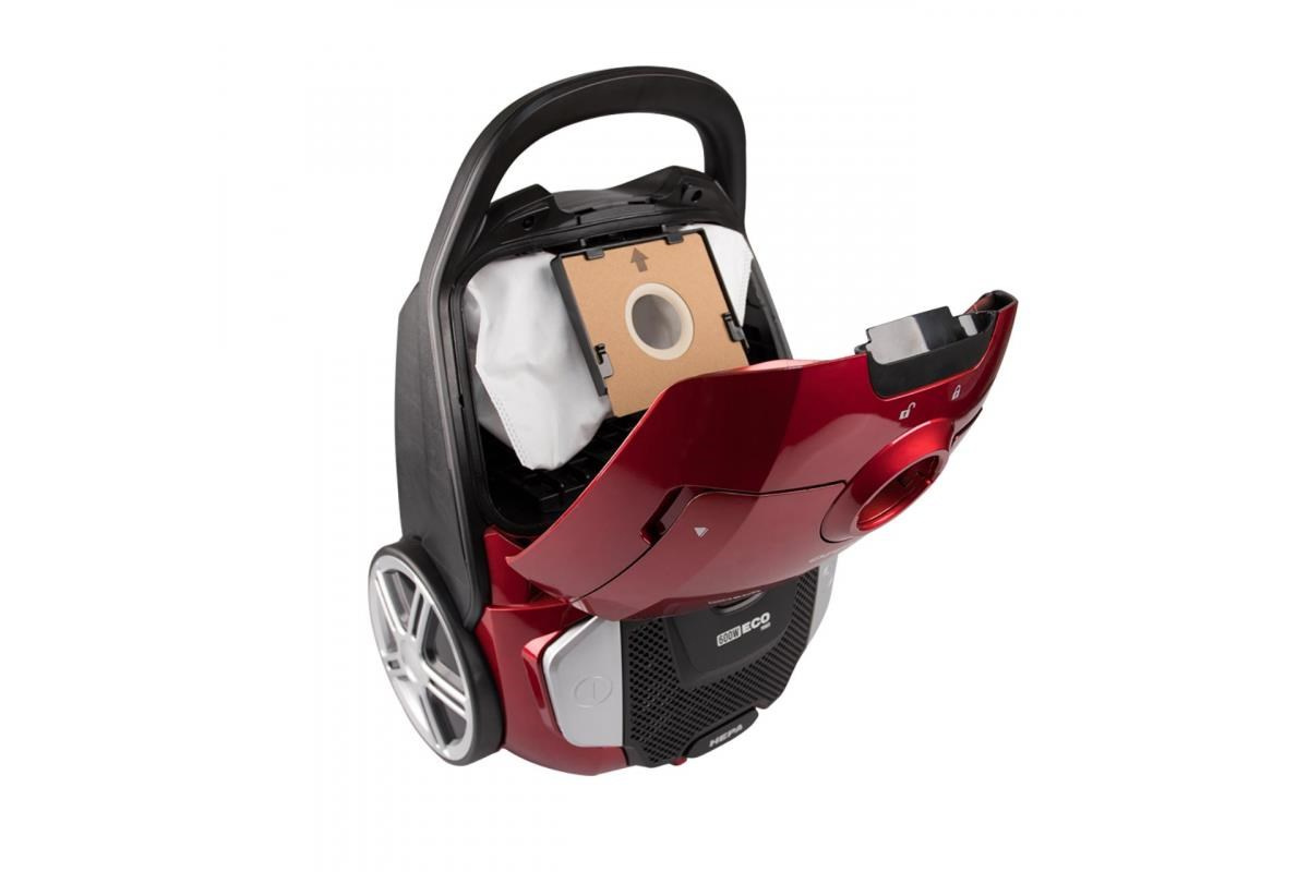 Orava Volcano vysavač, 600 W, sáčkový, objem 4 l, ECO motor, 68 dB, akční rádius 9 / 6 m, červená