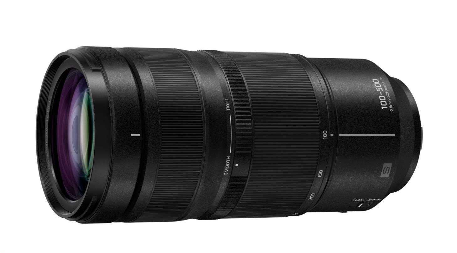 Ultra kompaktní teleobjektiv Lumix S pro foto a video v rozlišení 8K, ohnisková vzdálenost 100–500 mm s možností prodloužení až na 1000 mm (s 1.4×/2.0× telekonvertorem), optická stabilizace obrazu O.I.S.