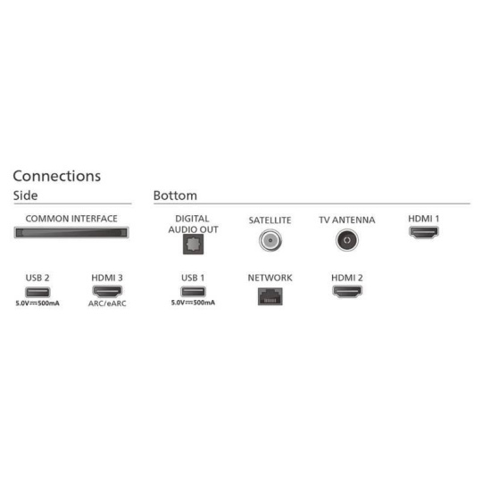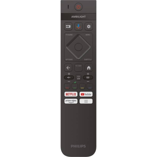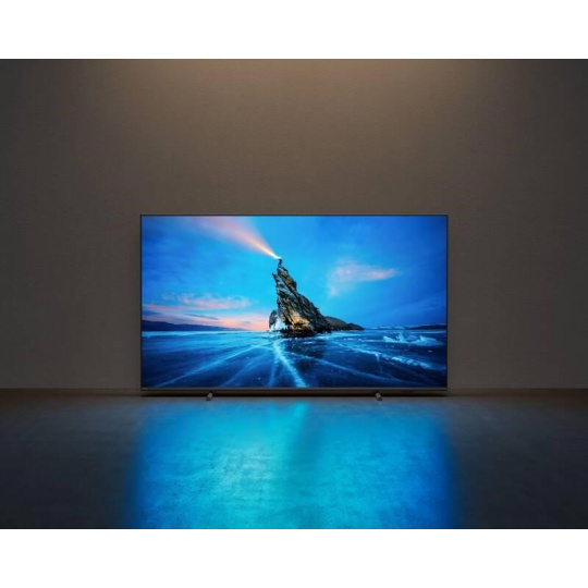 65" (164 cm) 4K Ultra HD Smart TV, rozlišení 3840 × 2160 px, technologie Philips P5 Perfect Picture, Quantum Dot Mini-LED, DVB-T2/C/S2 tuner, kodek HEVC (H.265) – nový digitální standard, Dolby Atmos, 3× HDMI 2.0, 2× USB 2.0, Wi-Fi, Bluetooth 5.0, LAN, Cl slot, operační systém Google TV.