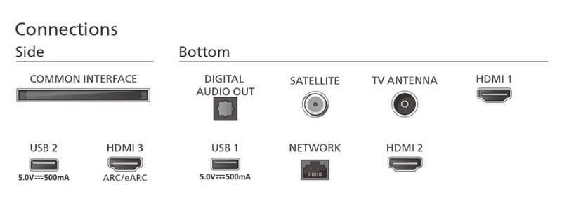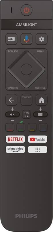 65" (164 cm) 4K Ultra HD Smart TV, rozlišení 3840 × 2160 px, technologie Philips P5 Perfect Picture, Quantum Dot Mini-LED, DVB-T2/C/S2 tuner, kodek HEVC (H.265) – nový digitální standard, Dolby Atmos, 3× HDMI 2.0, 2× USB 2.0, Wi-Fi, Bluetooth 5.0, LAN, Cl slot, operační systém Google TV.