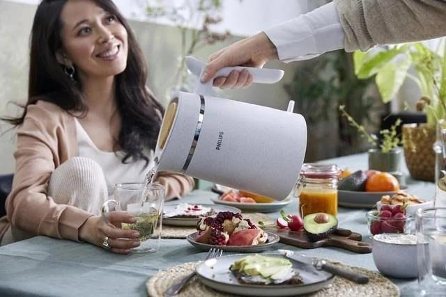 Vykročte vstříc zelenější budoucnosti s první rychlovarnou konvicí na světě vyrobenou z použitého kuchyňského oleje! Převratná metoda zpracování kuchyňských zbytků dala vzniknout speciálnímu bioplastu, který je mimořádně odolný a nezávadný. Konvice má minimalistický nadčasový design, který kombinuje recyklované a přírodní materiály. Skvěle se hodí do každého interiéru. Konvice má objem 1,7 l a díky snadno čitelnému indikátoru hladiny v okamžiku připraví požadované množství vody. Základna konvice je otočná o 360° a umožňuje snadnou manipulaci. Dolévání vody je možné pod proudem tekoucí vody. Přístroj disponuje řadou energeticky úsporných funkcí pro váš větší klid a šetrnost k přírodě.