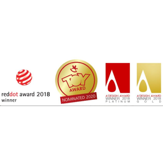 • Certifikovaný produkt s oceněním za design – Red Dot Design Award, Toy Award, A´DESIGN