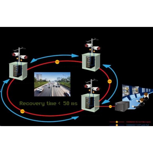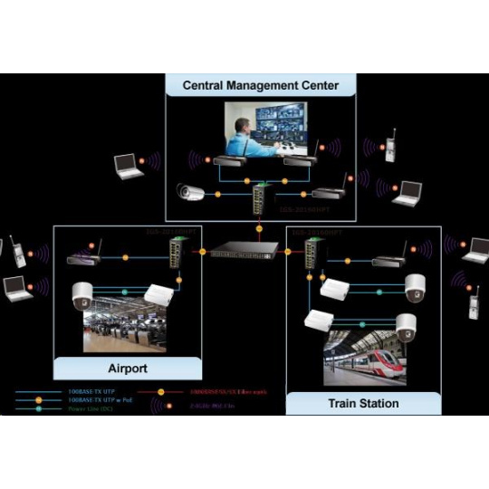 Planet IGS-20160HPT, 18x 1000BASE-T, 16x PoE 320W, 2x SFP, DIN, IP30, -40 AŽ 75°C, WEB/SNMPV3 IInteligentní přepínače pro průmyslový Ethernet jsou určeny do náročných provozních podmínek s velkým rozsahem pracovních teplot, nejistým napájením a častými otřesy. Zároveň poskytují vynikající možnosti vícenásobných propojení pro dosažení robustnosti propojení systémů s velmi nízkou dobou zotavení. IGS-20160HPT je vybaven pro redundanci kromě dobře známé metody Spanning Tree (jejíž doba zotavení je v řádu sekund) především specializovanou funkcí ERPS (Ethernet Ring Protection Switching), která má dobu zotavení a nalezení nové cesty do 50ms. Je podporováno statické L3 routování pro až 32 pravidel a 128 VLAN rozhraní. Přepínače řady IGS se snadno instalují na standardní DIN lištu nebo přímo na zeď a umožňují nasazení dobře známé Ethernetové technologie i v průmyslovém prostředí. Stejně tak jsou vhodné pro instalace do venkovně umístěných skříní s velkým kolísáním pracovních teplot (typicky bezdrátové a MAN ISP aplikace). Jejich velkou předností je prodloužená střední doba mezi výskytem poruch (MTBF)! Síťové vlastnosti: - 18 portů 1000Base-T, Switching, Full Duplex (1000/2000 Mbps), Auto-Negotiation (10/100/1000 Mbps), automatická detekce přímý/křížený kabel na každém portu - z toho 16 portů PoE injektory IEEE 802.3at se zatížitelností 30W/port; celkově až 320W při duálním napájení, při jednoduchém napájení výkon do 260W - 2 porty SFP pro instalaci modulů 1000Base-SX/LX/BX nebo 100Base-FX, sdílené s metalickými porty 17-20, podpora SFP-DDM (Digital Diagnostic Monitor) - 1x sériová konzole, RJ-45 - propustnost: sběrnice 40Gbps, provozně 29,7Mp/s(64B) - podpora přenosu Jumbo Frame do 9kB, 8k MAC adres, buffer 4MBits - správa přepínače Web/SNMPv3/konzole s podporou zabezpečeného přenosu SSH/SSL - alarm email ve spojení s I/O a stavem linek - podpora TCP IPv4/IPv6 - L3 statické routování, až 32 pravidel a 8 VLAN rozhraní - 255 VLAN IEEE 802.1Q sítí, MAC nebo protocol based VLAN, VoIP VLAN - agregace linek "port trunking" IEEE 802.3ad LACP, až 10 skupin po 8-mi portech - IGMP v1,v2,v3 až do 256 multicast skupin, IGMP querier mode - 8-úrovní QoS prioritizace provozu dle portu, DSCP/ToS, 802.1p nebo 802.1Q značky - port shaper v rozsahu 500kb-1000Mb/s - IEEE 802.1d Spanning tree protocol, IEEE 802.1w Rapid spanning tree protocol, IEEE 802.1s Multiple spanning tree protocol - "E.R.P.S ring" pro kruhovou topologii s dobou zotavení <50ms- IP/MAC ACL (access control list) do 256 pravidel - IEEE 802.1x (RADIUS) - IP+MAC binding, VLAN + MAC binding, 256 pravidel - zrcadlení portů: TX / RX / RX+TX, více portů na jeden - DHCP snooping pro potlačení nežádoucích serverů v síti - IEEE 802.1ab LLDP: automatická detekce typu připojených zařízení - diagnostika kabeláže, stanovuje délku kabeláže a případnou vzdálenost k závadě - podpora MODBUS protokolu (platí pro poslední verzi firmware) Fyzické vlastnosti: - napájení: duálně DC 48~56V, připojení není nutné ale je doporučené ze dvou různých zdrojů (nejsou součástí balení) - vlastní příkon <11W- I/O digitální rozhraní: 2x vstupy + 2x výstupy, terminálový blok - spínací poplachové relé (24V/1A) při výpadku primárního napájení - instalace na DIN lištu nebo na zeď, montážní díl součástí - krytí IP30 - pole LED indikátorů pro diagnostiku provozu - ochrana proti přepólování, připojení napájení na svorkovnici, umístění na spodním panelu (nepřekáží při montáži na zeď) - přepěťová ochrana LAN portů proti elektrostatickému náboji do 6kV (ESD) - zařízení je odolné proti pádu (IEC-60068-2-32) z výšky 75cm na všechny dopadové části - zařízení je odolné proti vibracím (IEC-60068-2-6) 10-500-10Hz, 4x g, 0,5oct/min - zařízení je odolné proti přetížení krátkodobému zrychlení 50g, dlouhodobému 4g, (IEC-60068-2-27) - EMI/EMS, elektromagnetická kompatibilita a slučitelnost dle CE EN-6100-4-2,3,4,5,6 - elektrická bezpečnost dle CE EN-60950 - provozní teplota -40 až 75°C, vlhkost do 95% - hmotnost: 1533g - rozměry(mm): 152 x 107 x 84.