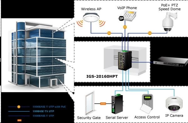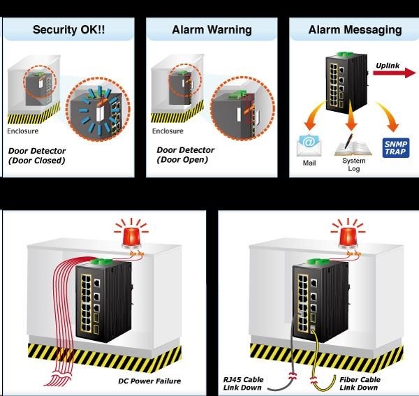 Planet IGS-20160HPT, 18x 1000BASE-T, 16x PoE 320W, 2x SFP, DIN, IP30, -40 AŽ 75°C, WEB/SNMPV3 IInteligentní přepínače pro průmyslový Ethernet jsou určeny do náročných provozních podmínek s velkým rozsahem pracovních teplot, nejistým napájením a častými otřesy. Zároveň poskytují vynikající možnosti vícenásobných propojení pro dosažení robustnosti propojení systémů s velmi nízkou dobou zotavení. IGS-20160HPT je vybaven pro redundanci kromě dobře známé metody Spanning Tree (jejíž doba zotavení je v řádu sekund) především specializovanou funkcí ERPS (Ethernet Ring Protection Switching), která má dobu zotavení a nalezení nové cesty do 50ms. Je podporováno statické L3 routování pro až 32 pravidel a 128 VLAN rozhraní. Přepínače řady IGS se snadno instalují na standardní DIN lištu nebo přímo na zeď a umožňují nasazení dobře známé Ethernetové technologie i v průmyslovém prostředí. Stejně tak jsou vhodné pro instalace do venkovně umístěných skříní s velkým kolísáním pracovních teplot (typicky bezdrátové a MAN ISP aplikace). Jejich velkou předností je prodloužená střední doba mezi výskytem poruch (MTBF)! Síťové vlastnosti: - 18 portů 1000Base-T, Switching, Full Duplex (1000/2000 Mbps), Auto-Negotiation (10/100/1000 Mbps), automatická detekce přímý/křížený kabel na každém portu - z toho 16 portů PoE injektory IEEE 802.3at se zatížitelností 30W/port; celkově až 320W při duálním napájení, při jednoduchém napájení výkon do 260W - 2 porty SFP pro instalaci modulů 1000Base-SX/LX/BX nebo 100Base-FX, sdílené s metalickými porty 17-20, podpora SFP-DDM (Digital Diagnostic Monitor) - 1x sériová konzole, RJ-45 - propustnost: sběrnice 40Gbps, provozně 29,7Mp/s(64B) - podpora přenosu Jumbo Frame do 9kB, 8k MAC adres, buffer 4MBits - správa přepínače Web/SNMPv3/konzole s podporou zabezpečeného přenosu SSH/SSL - alarm email ve spojení s I/O a stavem linek - podpora TCP IPv4/IPv6 - L3 statické routování, až 32 pravidel a 8 VLAN rozhraní - 255 VLAN IEEE 802.1Q sítí, MAC nebo protocol based VLAN, VoIP VLAN - agregace linek "port trunking" IEEE 802.3ad LACP, až 10 skupin po 8-mi portech - IGMP v1,v2,v3 až do 256 multicast skupin, IGMP querier mode - 8-úrovní QoS prioritizace provozu dle portu, DSCP/ToS, 802.1p nebo 802.1Q značky - port shaper v rozsahu 500kb-1000Mb/s - IEEE 802.1d Spanning tree protocol, IEEE 802.1w Rapid spanning tree protocol, IEEE 802.1s Multiple spanning tree protocol - "E.R.P.S ring" pro kruhovou topologii s dobou zotavení <50ms- IP/MAC ACL (access control list) do 256 pravidel - IEEE 802.1x (RADIUS) - IP+MAC binding, VLAN + MAC binding, 256 pravidel - zrcadlení portů: TX / RX / RX+TX, více portů na jeden - DHCP snooping pro potlačení nežádoucích serverů v síti - IEEE 802.1ab LLDP: automatická detekce typu připojených zařízení - diagnostika kabeláže, stanovuje délku kabeláže a případnou vzdálenost k závadě - podpora MODBUS protokolu (platí pro poslední verzi firmware) Fyzické vlastnosti: - napájení: duálně DC 48~56V, připojení není nutné ale je doporučené ze dvou různých zdrojů (nejsou součástí balení) - vlastní příkon <11W- I/O digitální rozhraní: 2x vstupy + 2x výstupy, terminálový blok - spínací poplachové relé (24V/1A) při výpadku primárního napájení - instalace na DIN lištu nebo na zeď, montážní díl součástí - krytí IP30 - pole LED indikátorů pro diagnostiku provozu - ochrana proti přepólování, připojení napájení na svorkovnici, umístění na spodním panelu (nepřekáží při montáži na zeď) - přepěťová ochrana LAN portů proti elektrostatickému náboji do 6kV (ESD) - zařízení je odolné proti pádu (IEC-60068-2-32) z výšky 75cm na všechny dopadové části - zařízení je odolné proti vibracím (IEC-60068-2-6) 10-500-10Hz, 4x g, 0,5oct/min - zařízení je odolné proti přetížení krátkodobému zrychlení 50g, dlouhodobému 4g, (IEC-60068-2-27) - EMI/EMS, elektromagnetická kompatibilita a slučitelnost dle CE EN-6100-4-2,3,4,5,6 - elektrická bezpečnost dle CE EN-60950 - provozní teplota -40 až 75°C, vlhkost do 95% - hmotnost: 1533g - rozměry(mm): 152 x 107 x 84.