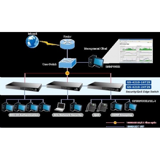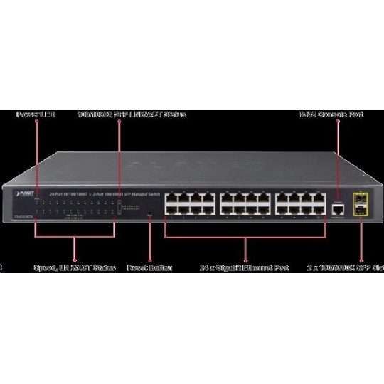 Planet switch GS-4210-24T2S, L2/L4, 24x 1000Base-T, 2x SFP, web, SNMP V3, VLAN, QOS, IPV6