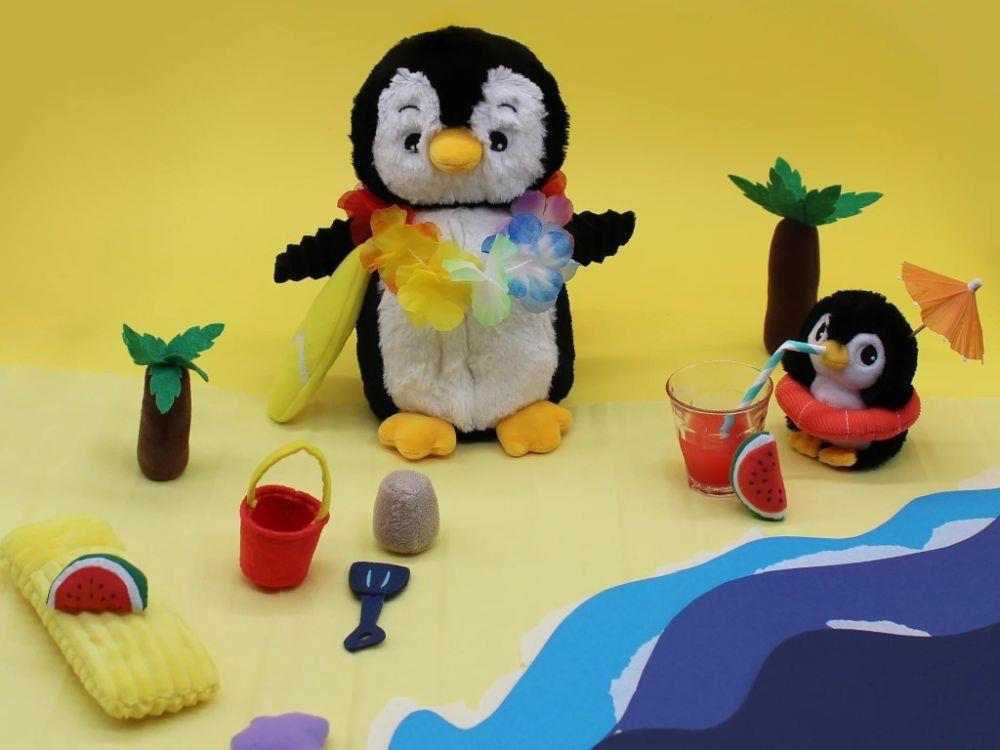 Plyšový tučňák - máma s miminkem, černá