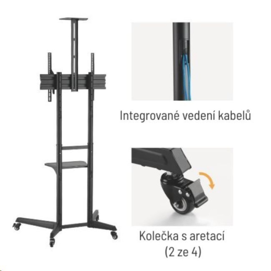 - 4 kolečka umožňují snadné a bezpečné přemístění stojanu dle potřeby, 2 kolečka s možností aretace