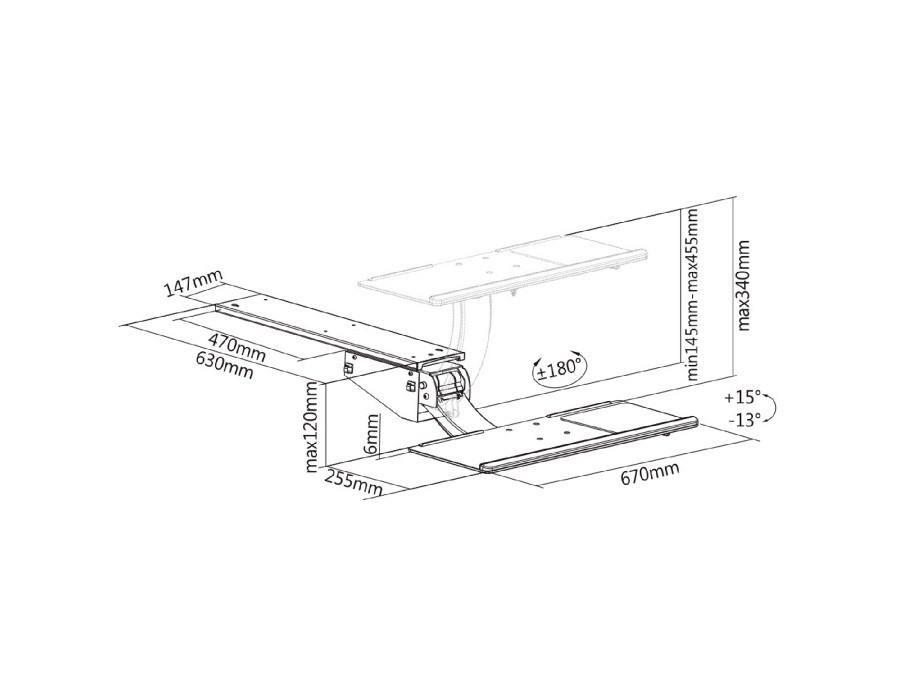 Polička na klávesnici Fiber Mounts M7C95 Plně polohovatelná přídavná polička na klávesnici, rozměry 670x255mm Profesionální plně polohovatelná stolní přídavná polička na klávesnici a myš, která poskytuje skutečné ergonomické řešení pro Vaši nejpohodlnější práci. Nastavení ve všech polohách s aretací. Pokud požadujete to nejlepší a záleží Vám na zdravém pracovním stylu, tuto poličku si zamilujete. Profesionální stolní polička na klávesnici, plně polohovatelná: výsuvná, otočná, sklopná, výškové nastavení 34cm, aretace polohy - Fiber Mounts M7C95 Technické údaje: nosnost 2kg výsuvná 470mm výškové polohování 340mm otáčení +/- 180° rozsah naklápění +15 / -13° rozměry police 670 x 255 snadné schování police s klávesnicí pod stolovou deskou aretace polohy nejvyšší kvalita snadná instalace a ovladatelnost zvýšení komfortu a pracovního výkonu barevné provedení černé záruka 3 roky Precizní velmi snadné polohování poličky na klávesnici Fiber Mounts M7C95 Ušetřete na svém stole spoustu místa - dejte klávesnici a myš na tuto výsuvnou polici a kdykoliv ji můžete uschovat pod slolovou deskou. Police je plně nastavitelná a poskytuje při práci vysoký komfort..