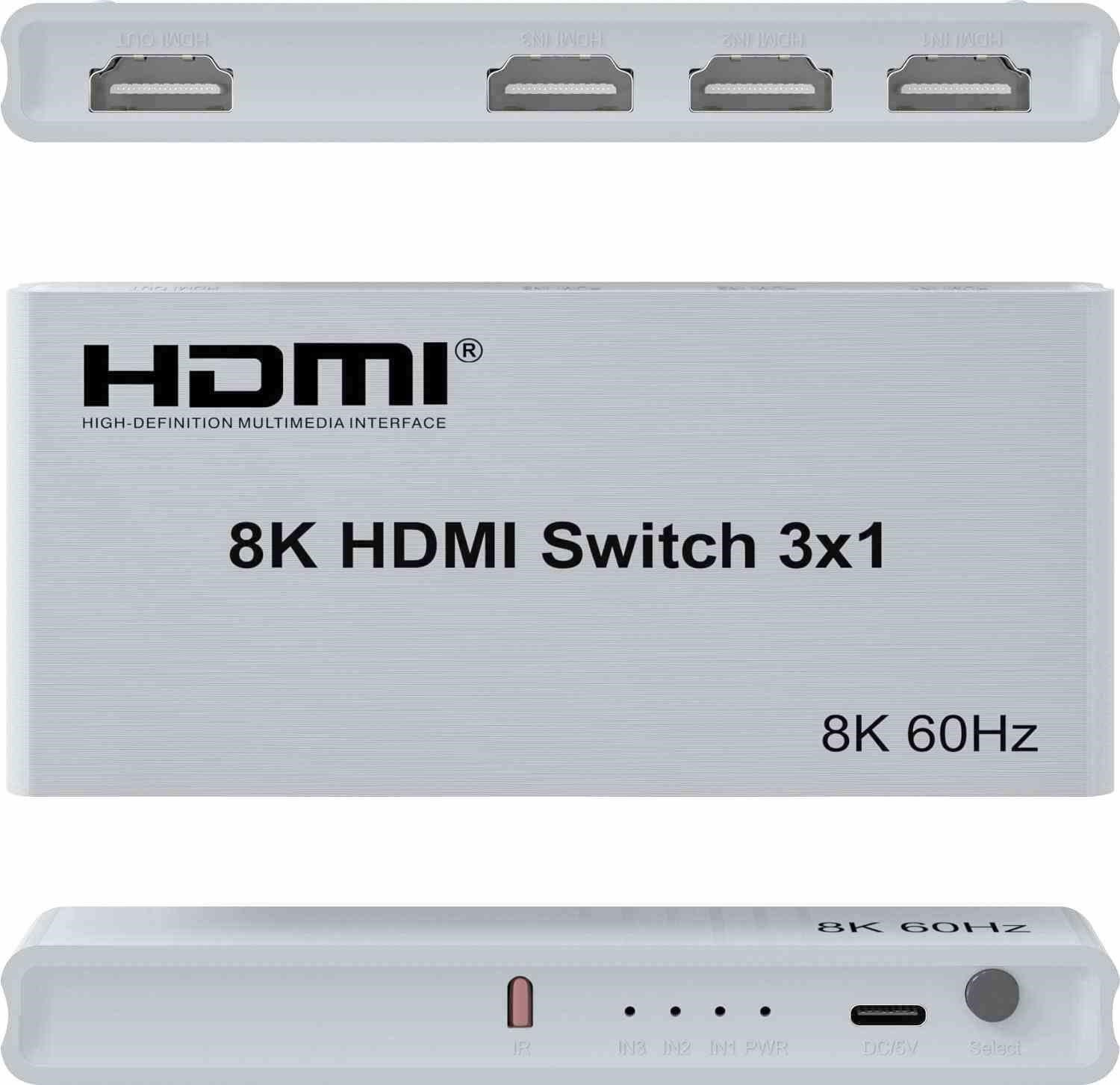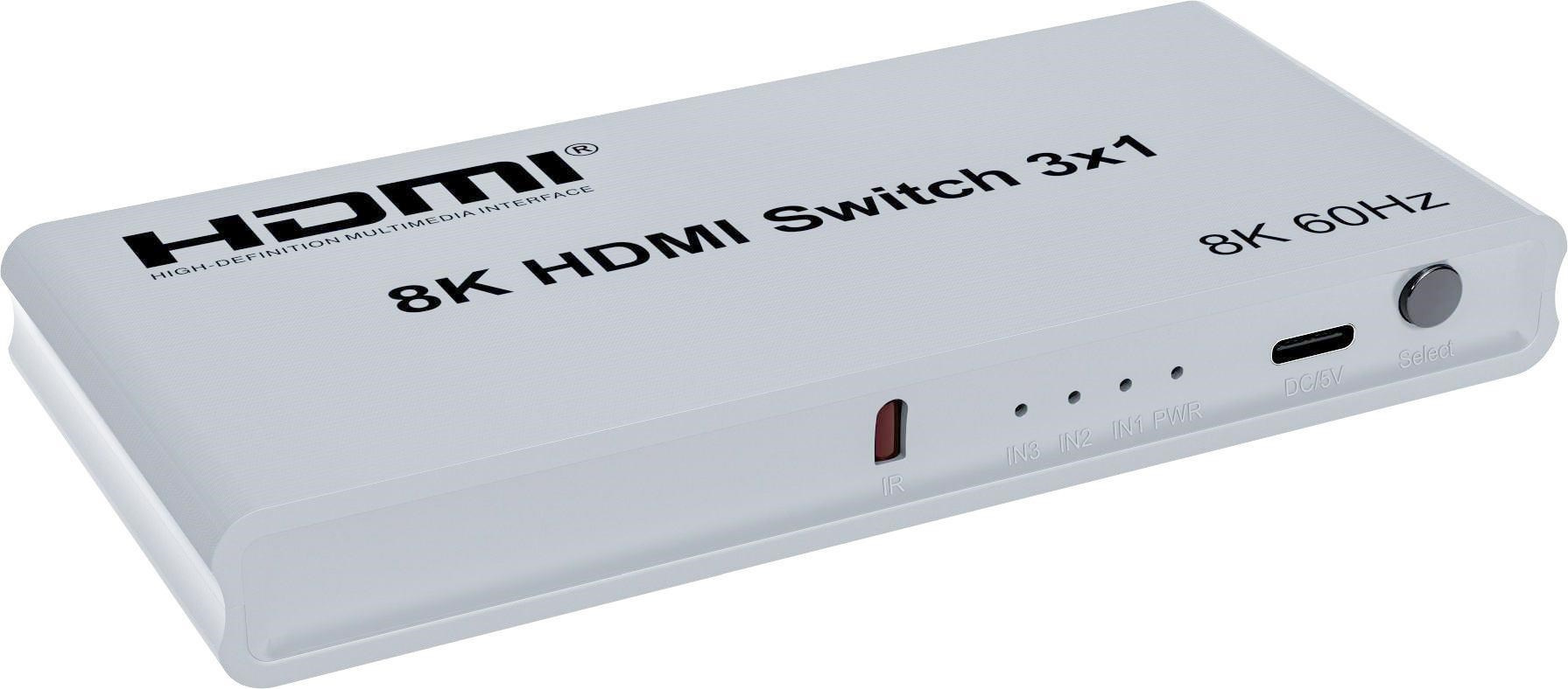 PremiumCord 8K@60Hz, 4K@144Hz HDMI switch 3:1 s dálkovým ovladačem