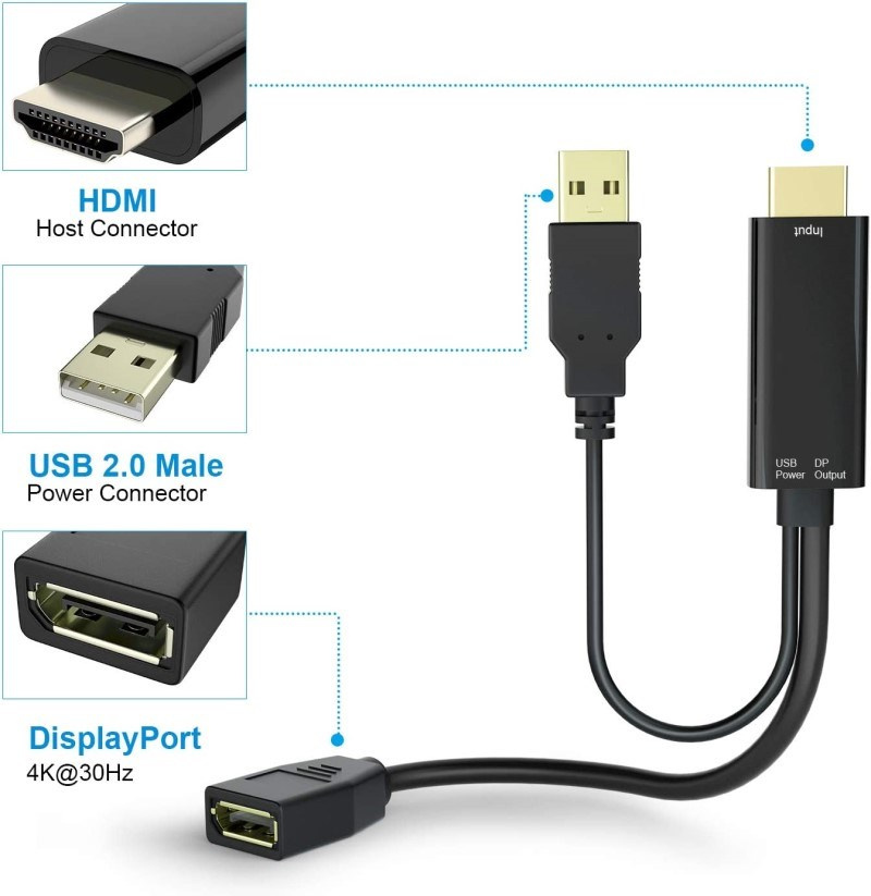 PremiumCord adaptér HDMI to DisplayPort Male/Female s napájením z USB - Vstupní konektor: HDMI /Male - Výstupní konektory: DisplayPort /Female - Převádí signál HDMI na DisplayPort signál - Na vstupuHDMI 1.4 přijímač – Link rate up to 2.97 Gbps/data pair. – Hloubka barev až 16 bits na barvu – 3D video timings - Výstup kompatibilní s DP 1.2 – Video rozlišení až 4Kx2K @ 30 Hz; 1920 x 1080 @ 120 Hz. – Audio 7.1 až do 192 kHz sample rate. - Malá spotřeba, aktivní 500 mW & standby 25 mW - Napájení pomocí USB konektoru - Barva : černá.