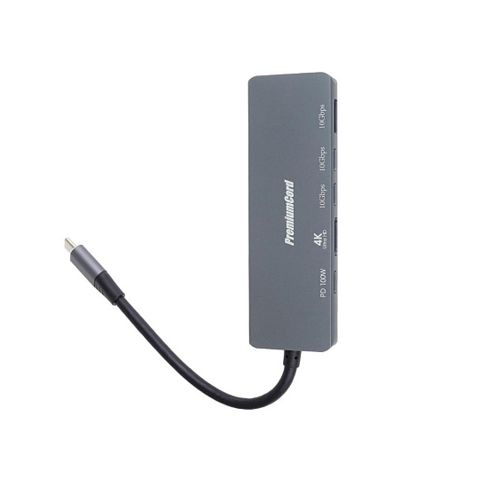 PremiumCord Adaptér USB-C na 4K@60Hz HDMI + 10G USB3.2 A + 10G 2x USB-C + PD
