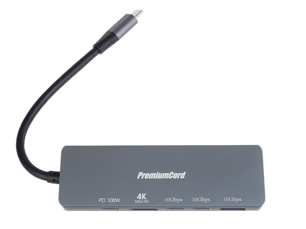PremiumCord Adaptér USB-C na 4K@60Hz HDMI + 10G USB3.2 A + 10G 2x USB-C + PD