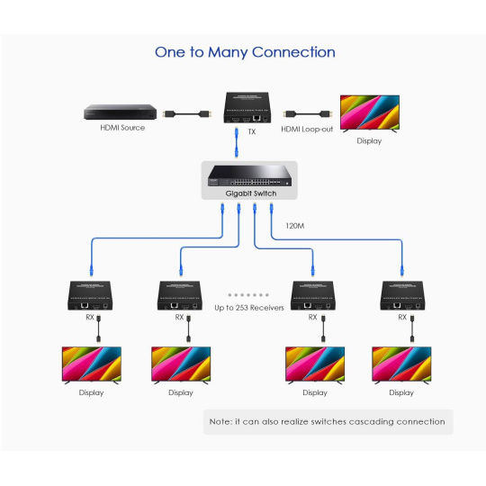 PremiumCord HDMI extender na 120m přes LAN, nekompresovaný, 4K@60Hz, přes IP