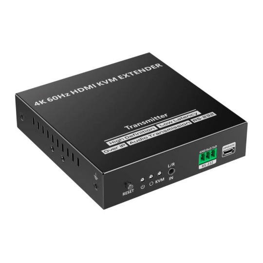 Zařízení umožňuje po jednom síťovém kabelu nebo prostřednictvím LAN sítě přenést 4K@60Hz HDMI signál , klávesnici a myš až na 120m a současně IR signály.
