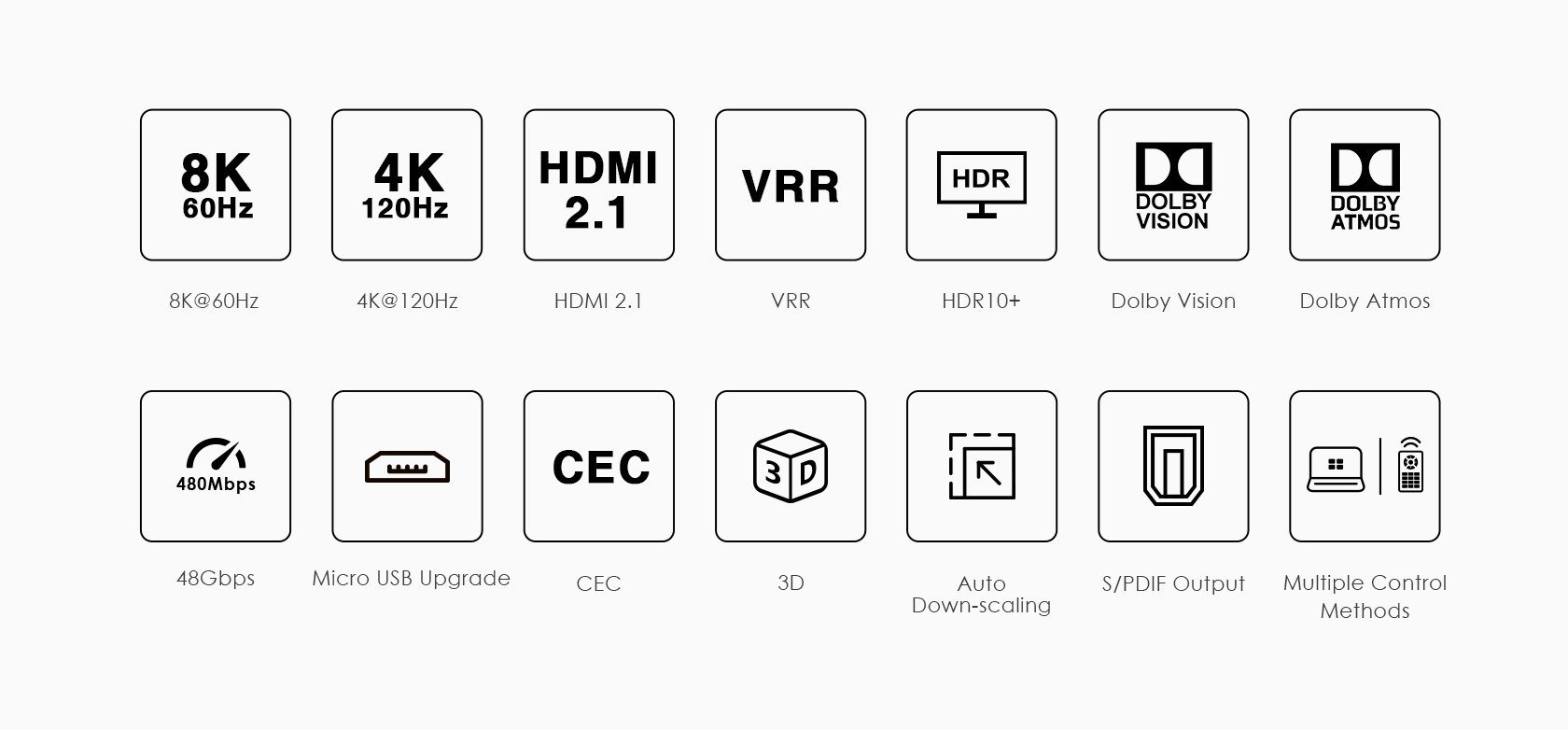 PremiumCord HDMI switch 4:1 s podporou rozlišení 8K@60Hz,4K@120Hz, 1080P, HDR, s dálkovým ovladačem