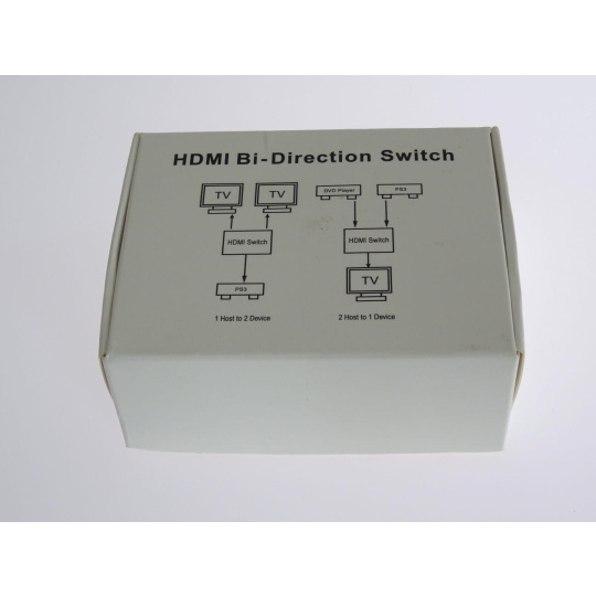 - Obousměrný 2x1 / 1x2 Přepínač HDMI lze použít dvěma různými způsoby: připojit 2 vstupní zdroje s 1 výstupním displejem nebo 1 vstupní zdroj se 2 displeji (funguje pouze na 1 obrazovce, nikoli současně).
