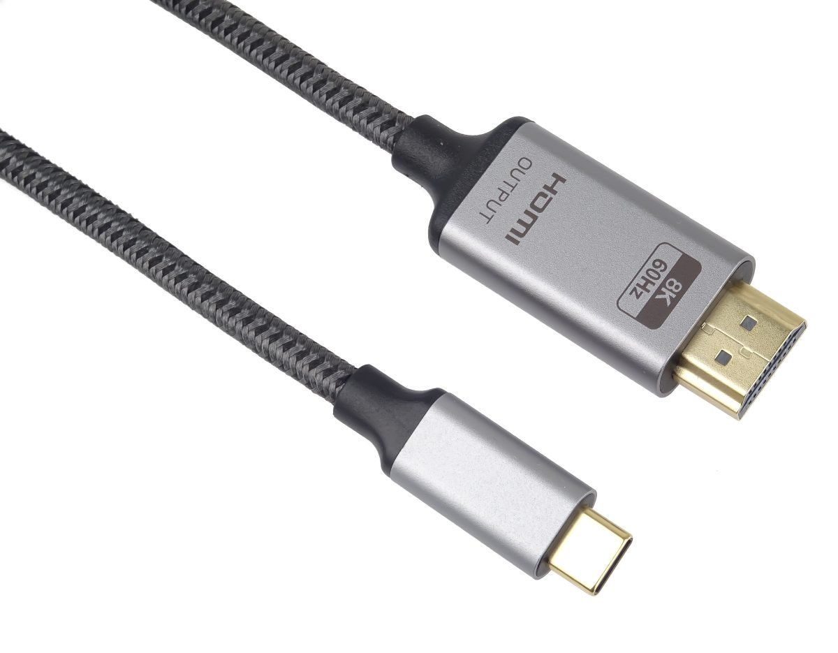 PremiumCord kabel USB-C na HDMI 2m rozlišení obrazu 8K@60Hz,4K@144Hz Aluminium