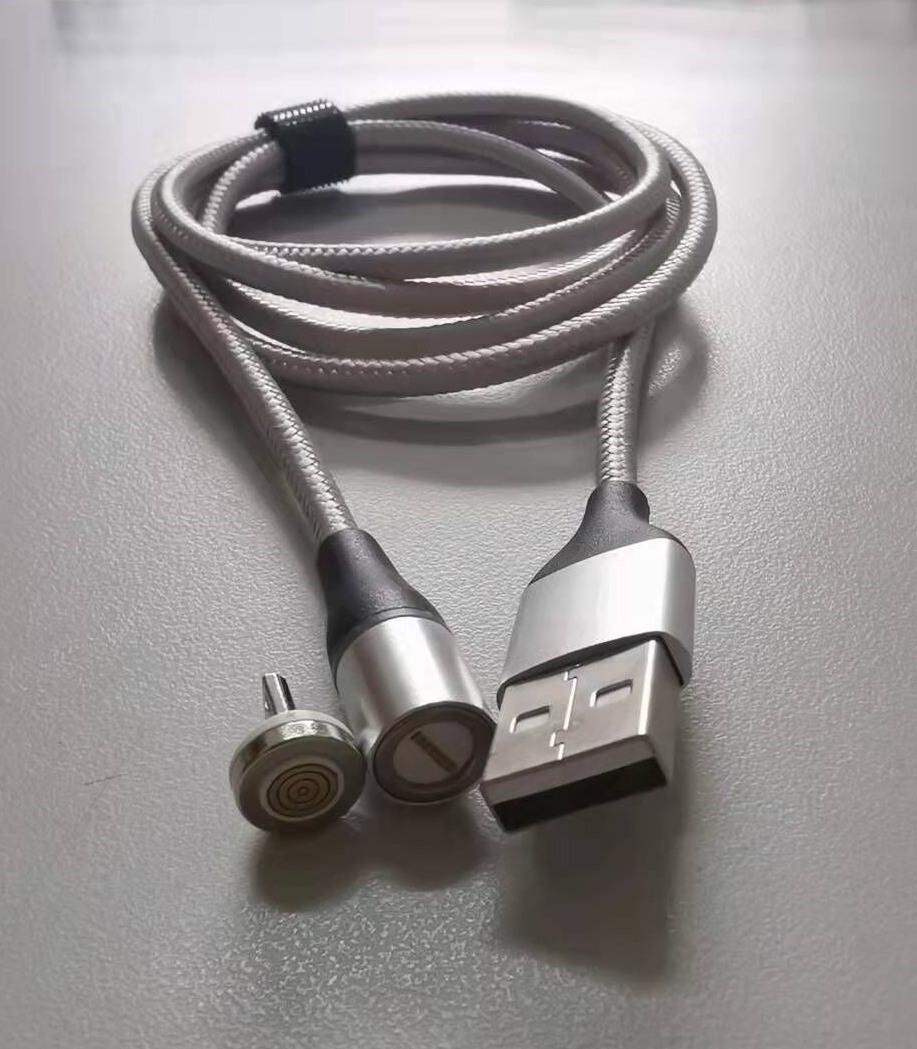 PremiumCord Magnetický micro USB a USB-C nabíjecí a datový kabel 1m, stříbrný