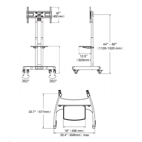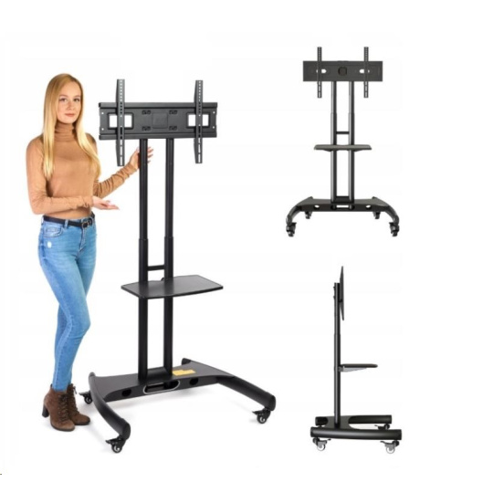 Profesionální stojan na Tv monitory displeje NB AVA1500 Mobilní stojan na všechny typy a značky televizorů 32-65", VESA 100x100 až 600x400, nastavení výšky 112-152cm, polička na příslušenství 456x320mm, vedení kabeláže, kolečka s aretací, stabilní a spolehlivý, nosnost 45,3kg Televizní stojan určený nejen pro komerční účely, nejvyšší kvalita a krásný design. Stojan je určen pro zavěšení televizorů s úhlopříčkami 32-65" všech typů i značek. Dodáván je včetně poličky na příslušenství, kterou lze stejně jako stojan výškově polohovat. Levný profesionální stojan na televize a monitory s úhlopříčkou 32-65 palců, výškové nastavení, pojezd s brzdou, možnost uzamčení Tv, vedení kabeláže, police na příslušenství, stabilní a bezpečná konstrukce. TOP kvalita, provedení černé nebo bílé - stojany Fiber Mounts AVA1500 Televizní stojany NB AVA1500 jsou nejčastěji využívány na výstavách, prezentacích, reklamních akcích, v čekárnách, lékárnách, ordinacích, na přednáškách a konferencích. Jeho konstrukce je provedena tak, aby stojan poskytoval velmi snadnou a rychlou mobilitu a výškovou flexibilitu, která se Vám velmi osvědčí právě při různých prezentacích A/V technikou. Televizní stojany na konference, přednášky, prezentace - snadné zavěšení LCD, LED, plazma, 3D, dotykových, OLED i prohnutých obrazovek s úhlopříčkou 32-65 palců, výškové nastavení, vedení kabeláže, barva černá nebo bílá - Fiber Mounts AVA1500 Technické údaje: maximální zatížení 45,3kg vhodný na televizory a monitory s úhlopříčkou 32" až 65" podporuje VESA standardy 100x100 až 600x400 nastavení výšky stojanu 1120 až 1520mm systém pro skryté vedení kabeláže police na příslušenství 456x320mm, nosnost 5kg, výškově nastavitelná kvalitní pojezdová kolečka s aretací vynikající stabilita profesionální pevná a bezpečná konstrukce velmi pěkný design barevné provedení černé záruka 5 let Televizní stojan AVA1500 - Top kvalita za skvělou cenu Stojany na Tv NB AVA1500 podporují VESA standardy: VESA 100x100 VESA 200x100 a 100x200 VESA 200x200 VESA 300x100 a 100x300 VESA 300x200 a 200x300 VESA 300x300 VESA 400x200 a 200x400 VESA 400x300 a 300x400 VESA 400x400 VESA 600x400 Profesionální konstrukce, špičkové provedení, snadná nastavitelnost a polička na příslušenství, to vše za velmi příznivou cenu. Díky těmto vlastnostem se stal televizní stojan NB AVA1500 velmi žádaným a vyhledávaným. Televizní stojan na reklamu a prezentaci Fiber Mounts AVA1500 můžete zakoupit v černém nebo bílém provedení. Výškové nastavení, VESA standard, police na příslušenství, stabilita, bezpečnost, mobilita. Záruka 5 let. Velmi levný profesionální stojan na Tv a monitory. Se stojany AVA1500 se velmi často setkáte na: výstavách prezentacích konferencích sálech koncertech přednáškách na školách v informačních centrech v ordinacích, nemocnicích čekárnách.