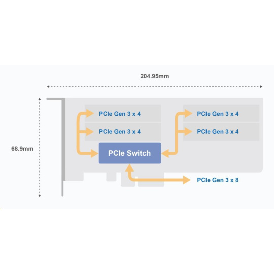 Technické specifikace| Konektor | 4 x M.2 2280 PCIe (Gen 3 x 4) NVMe SSD sloty |