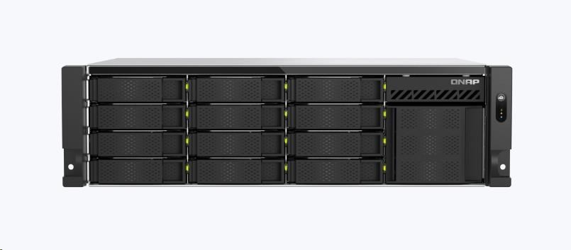 | Pozice pro diskové jednotky | 12 x 3,5-palcový SATA 6Gb/s, 3Gb/s + 4 x E1.S/M.2 PCIe Gen 3 x2 sloty Systém se dodává bez HDD. Seznam kompatibilních disků HDD najdete na stránce https://www.qnap.com/compatibility/ |