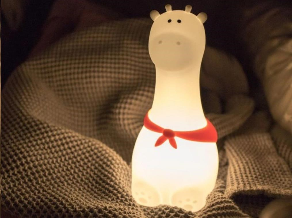 Dětská lampička v podobě roztomilé žirafy s barevnými šátky, vyrobená z měkkého, certifikovaného a zdravotně nezávadného silikonu, je ideální první lampičkou pro děti. Měkká lampička se stane věrným zvířecím kamarádek, který pomůže vašemu dítku s usínáním, doprovodí ho v noci na záchod a s nadšením s ním vyrazí za každým dobrodružstvím. Zapnout, vypnout lampičku, změnit barvu světla, je zcela jednoduché, stačí na lampičku poklepat.