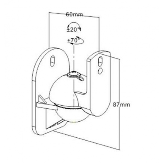 Držáky na reproduktory, 2ks - vzdálenost od stěny 6cm, výška držáku 7cm, reproduktor lze horizontálně otáčet 140° a naklonit +/-20°, maximální zatížení 3,5 kg, barva černá..