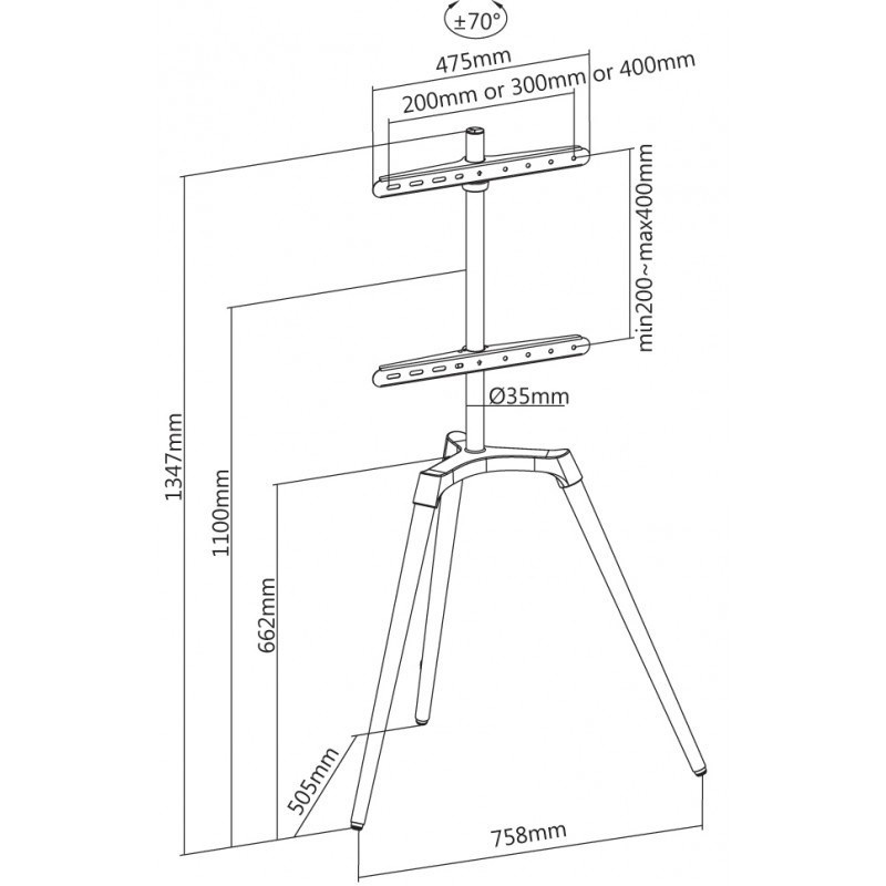 Unikátní televizní stolek na Plasma a LCD TV s uhlopříčkou 50"- 65" (127-165cm) a hmotností maximálně 35kg. Designová kombinace černé kovové konstrukce + 3x dřevěné nohy (ořech). Propracované tvary a vedení kabeláže pro maximální estetický zážitek. Uchycení VESA: 200x200, 300x200, 300x300, 400x200, 400x400..