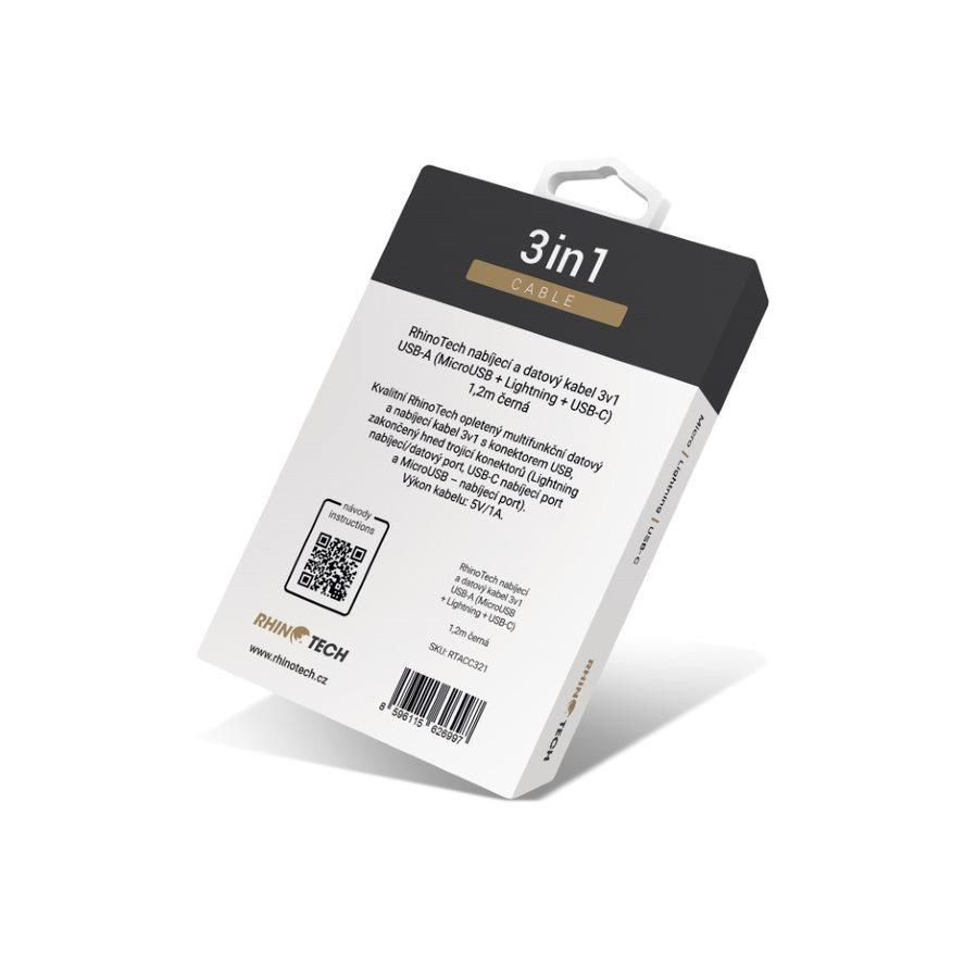 RhinoTech nabíjecí a datový kabel 3v1 USB-A (MicroUSB + Lightning + USB-C) 1,2m černá