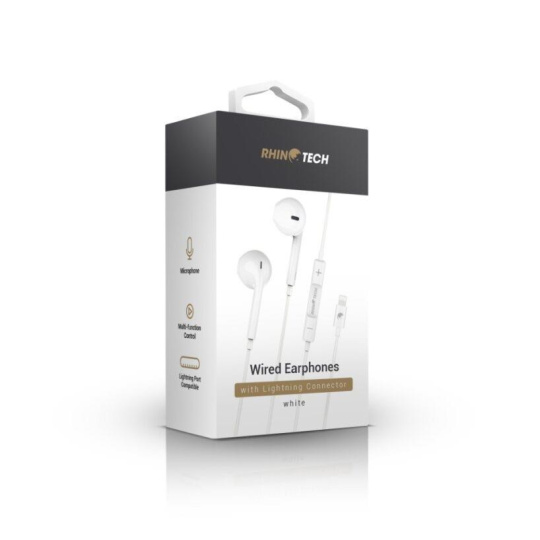 RTACC475 - RhinoTech drátová sluchátka s Lightning konektorem bílá