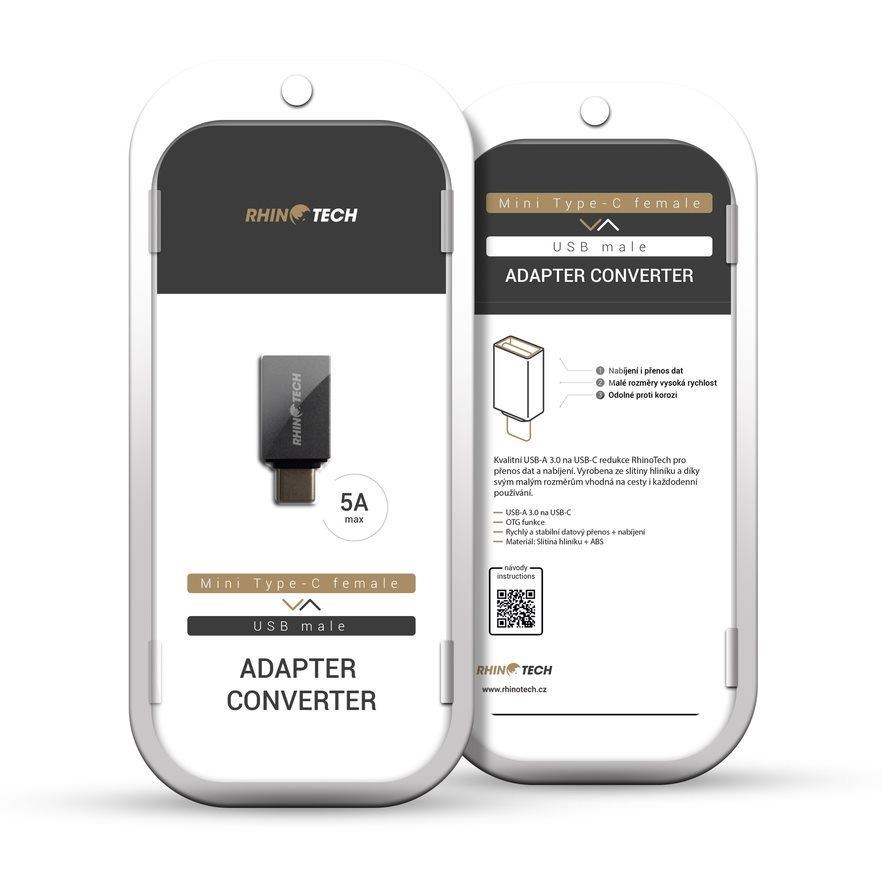 RhinoTech redukce USB-C (M) na USB-A (F), OTG, černá