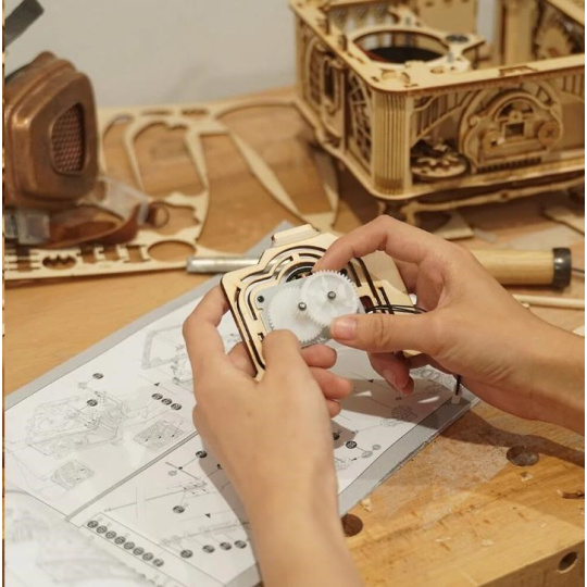 RoboTime 3D dřevěné mechanické puzzle Gramofon (elektrický pohon)