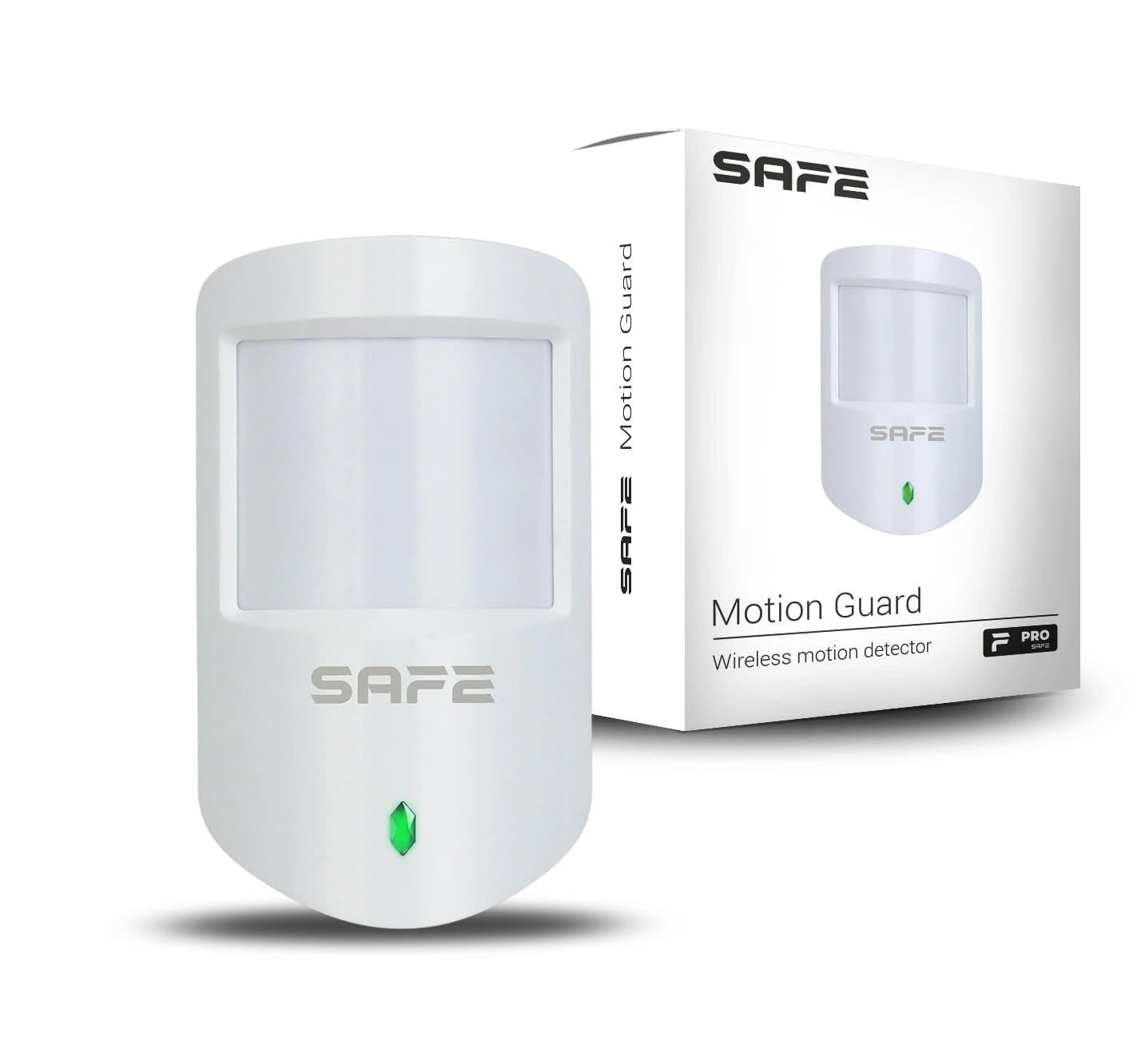 Motion Guard je bezdrátový detektor pohybu vybavený duálním PIR senzorem detekující pohyb ve vzdálenosti až 12 metrů, který je schopen spolehlivě ignorovat pohyb zvířat ve střeženém prostoru (PET imunita) do hmotnosti 18 kg a 50 cm výšky. Díky šifrovanému komunikačnímu protokolu SAFE Keeper zajišťuje bezpečné spojení s centrální ovládací jednotkou zabezpečovacího systému SAFE až na vzdálenost 1 600 metrů v otevřeném prostoru. Detektor je napájen vyměnitelnou baterií typu CR123A, která umožňuje nepřetržitý provoz detektoru po dobu až 4 let..... více