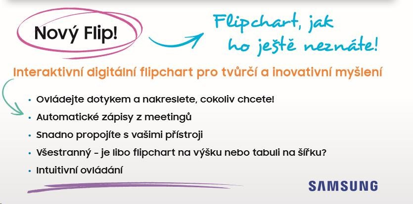 - Dotykový displej Samsung Flip umožňuje díky rozsáhlým možnostem konektivity snadné zapojení více uživatelů. Takže vy i vaši spolupracovníci můžete kdykoliv upravovat a tvořit rozmanitý obsah v té nejvyšší kvalitě.
