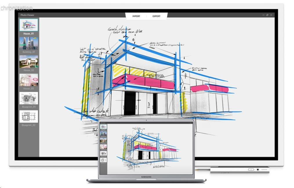 Samsung Flip podporuje rozmanitá řešení pro jednoduché sdílení a úpravu obsahu. Dosáhněte efektivnější spolupráce propojením s dalšími přístroji. Využijte například svá mobilní zařízení a spojte se s displejem bezdrátově i pomocí kabelu.
