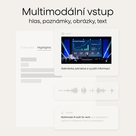 - Váš inteligentní AI asistent a partner: záznam, přepis, souhrn, organizace, dedukce