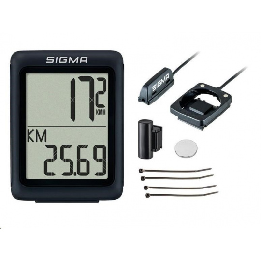 Tento nejmenší počítač SIGMA je kompaktní a ukazuje pět nejdůležitějších základních funkcí, které mají cyklisté rádi na očích: rychlost, denní počet kilometrů, celkový počet kilometrů, čas jízdy a hodiny.