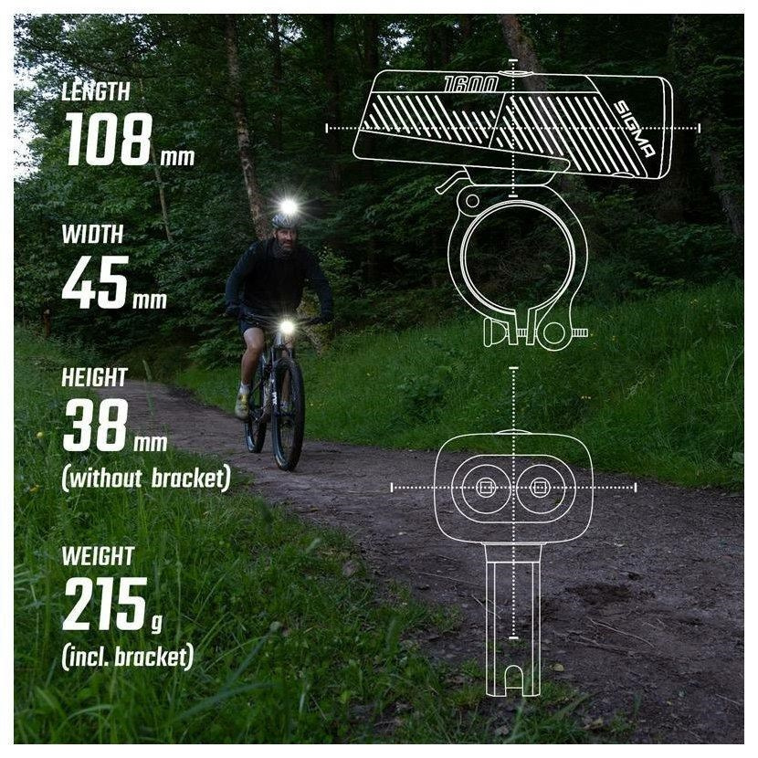 Světelný kužel světla Buster 1600 je opravdovým unikátem. Perfektně nasvítí silnici i stezku tak, aby cyklista o hodně lépe viděl do zatáček a na terén. Umožňuje to nově vyvinutá dvojitá čočka se dvěmi různými optikami a dvěmi prémiovými LED od společnosti Osram. Výsledkem je spousta světla a obzvláště široký a homogenní světlený kužel. Logo SIGMA na podélných stranách světla zajišťuje podstatně lepší viditelnost ze strany a tím i vyšší bezpečnost v silničním provozu